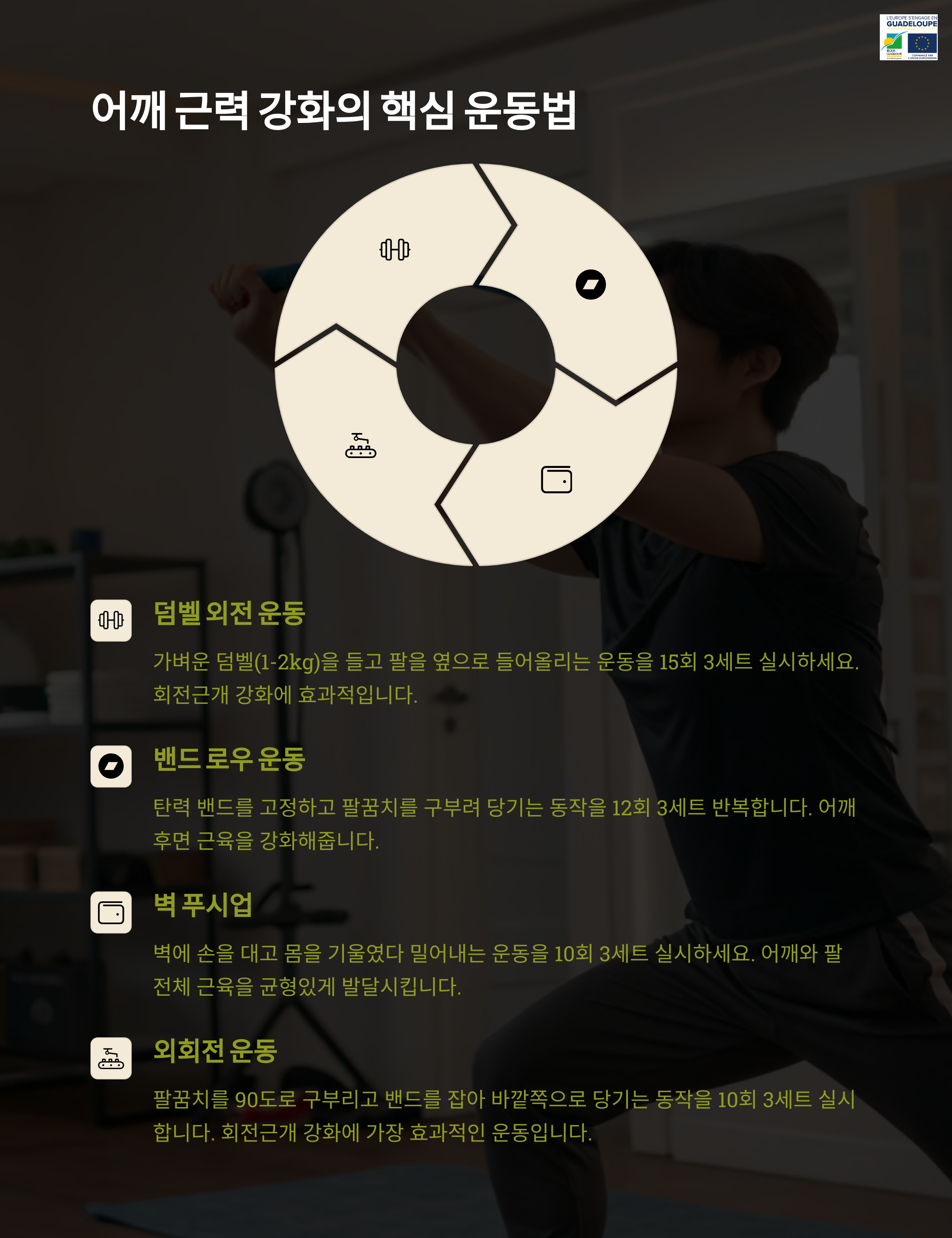 근력 운동 | 회전근개 등 소근육을 강화하는 덤벨 및 밴드 운동 |